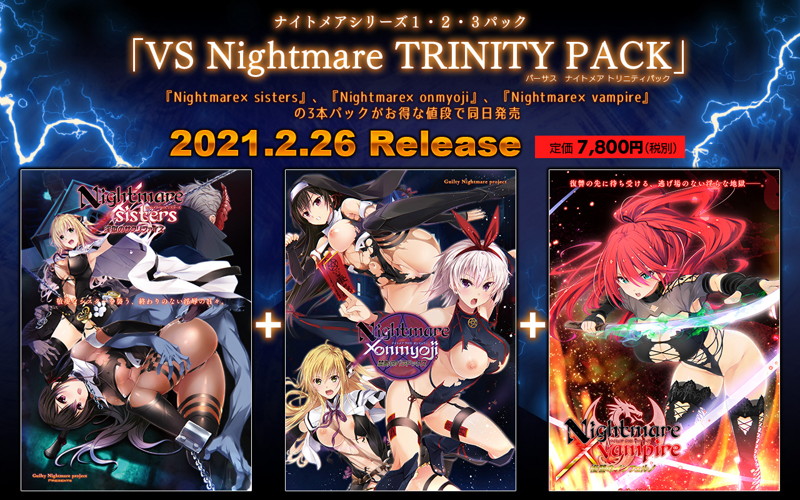 『Nightmare×sisters』、『Nightmare×Onmyouji』、『Nightmare×Vampire』の3本パックです。 -