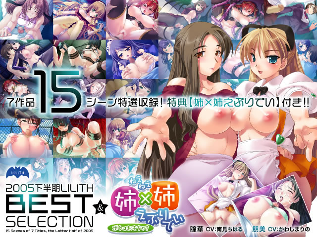 2005年下半期リリス作品集!話題のヒット作「姫騎士リリア完全版」「対魔忍アサギ」「姉☆孕みっくす2」など含む全7作品、全15シーンを収録!!選りすぐり集めたHシーンを楽しむも良し!気になるあの作品の購入検討に良し!さらに特典として、姉弄られADV「姉×姉えぶりでい〜ボクはおもちゃ?〜」を収録! -