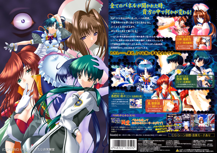 主人公・律丸 嬰佐玖は原因不明の悪夢に魘される日々を過ごしていた。悪夢から逃れる為に不眠を選択した彼はフラッシュアウトや偏執病を日常化させてしまう。ある日、バイトから上がった彼は後輩、日神 堵卯乃から、とある悩乱をうちあげられる。「わたし…。最近、とても怖い夢を見るんです…。」「ゲーム開始後すぐにエッチイベントが見たい!」そんなプレイヤーの要望を取り入れた「ダークサイコ・パネルイベントシステム」を… -