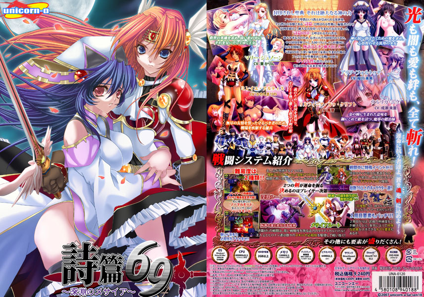 ゲーム性を重視したレーベル‘げーせん18’から本格戦略SRPGが登場!大陸統一に必要な聖典<詩篇>を巡る戦いの中、自分の運命に絶望した主人公が5人の女性たちとの出会いにより、自分の運命、そして世界の運命を変えていく壮大な物語を描いたファンタジーSRPG!プレイヤーが選ぶ剣によって様々に変化していくストーリー、難易度が選べる「シミュレーションパート」や、倒した敵の数だけ武器が強くなる「熟練度システム… -